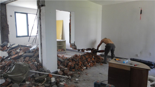 墙体拆除后我们会进行新墙体的砌筑,那么千万别忘记修补。比如拆除原有墙面,要用红砖新砌墙面时,就要在新修建的墙体上设置拉筋。“拉筋”是对新旧墙接缝的地方的施工方法,就是用钢筋把新、旧墙面拉住,保证墙体的稳定性、抗震性。另外在墙面上开凿门洞,门洞上方也要架设一道钢筋混凝土的“横梁”,这样能够分担门洞上方墙壁的压力,避免墙面上方的压力直接压到门框上。