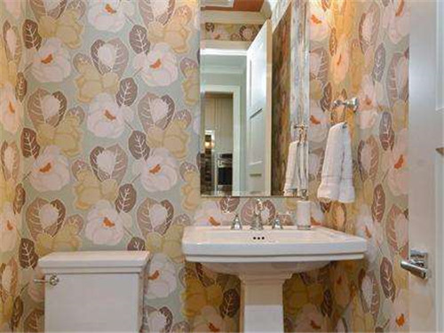 2、防水材料相比在卫生间当中铺贴瓷砖比,墙纸的色泽更加的明快、通透,图案也比瓷砖的要精致的非常多,它可以满足于居住者对人们个性化的追求。