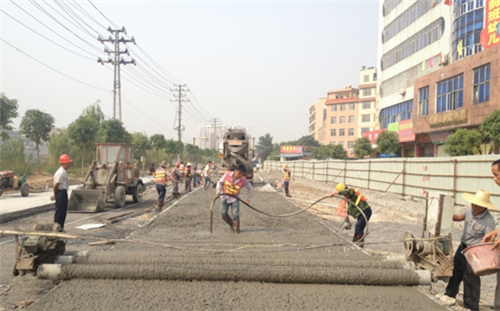 目前许多企业施工水平不是很高,尤其是对路面基层的标高控制不到位,造成基层平整度较差,加大了混凝土路面施工的难度。在实际施工中,我们可对基层表面与面层基准标高线隔段实测来决定混凝土的卸料量,这样会避免卸料不均的问题。