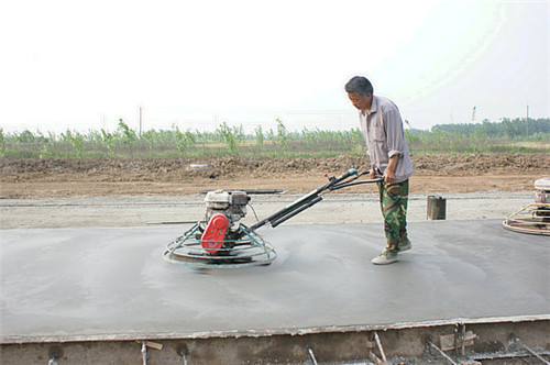 水泥混凝土路面面层混凝土浇筑后,当混凝土终凝前必须用人工或机械将其表面抹平。当采用人工抹光时,其劳动强度大,还会把水分、水泥和细砂带到混凝土表面,以致表面比下部混凝土或砂浆有较高的干缩性和较低的强度。当采用机械抹光时,其机械上安装圆盘,即可进行粗光;安装细抹叶片,即可进行精光。