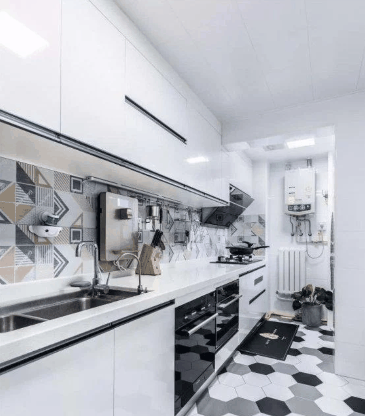 现在有很多房子里面的厨房都是一个比较狭长的空间,这种狭长空间的厨房该怎么去布置橱柜和收纳也是很多屋主所烦恼的设计,今天西安旧房改造公司小编就分享一些狭长型的厨房设计方案给大家,希望能给同样户型的你一点参考。