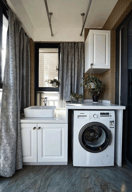 1、清洗一些衣物,换洗衣物比较少的时候,可以选择手洗的方式,在阳台洗手盆洗完之后,直接可以挂到阳台晾杆上晒干,非常方便。