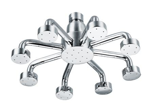 图二中的花洒样式非常独特、新颖,类似八爪鱼的样式,每个“脚”均匀地向各个方向展开,适合从上头直接淋浴,外观时尚,十分有个性,同时选用上乘的材质,内置活性炭滤芯,吸附水中的杂质和异味,净化水质,给人全身心的清洁淋浴,自然清爽。