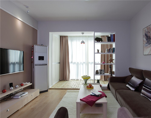 一道门帘成为两个空间的唯一隔断,这里的阳台其实是客厅的一个延伸,不管是在设计风格还是装饰上它都完全与客厅装修相符,恰到好处的设计巧妙的化解了小客厅的压抑之感。