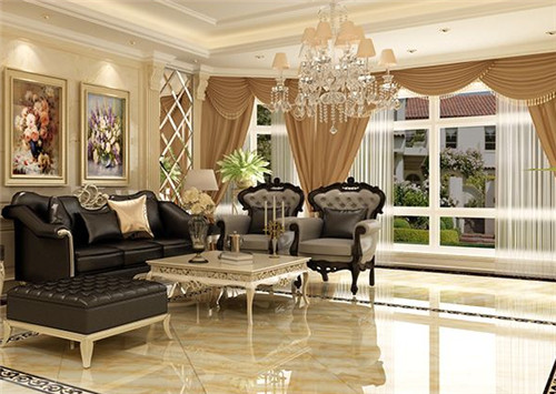 浅色的拼花地砖让客厅显得格外的雅致,在光线的作用下通透感十足,它与简欧风格的客厅搭配非常的协调,整体给人温婉浪漫的感觉,让人感觉到家的温暖和情趣生活的美好。