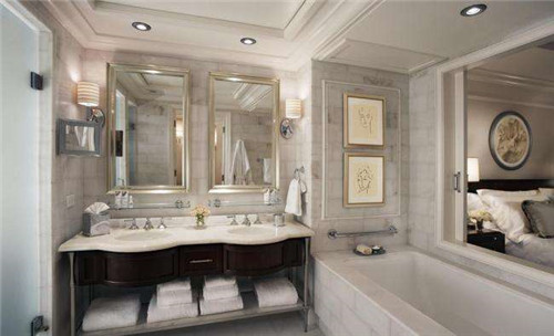 3、如果主卧当中带有一个独立的卫生间,那么我们在安装浴缸的时候,地面不要砌上高,因为浴缸本身就是用来清洗身上的脏污的,也是隐藏污垢的地方,如果将浴缸设计的凌驾于卧室的地面之上,超过床面的高度,就会造成非常不好的影响。
