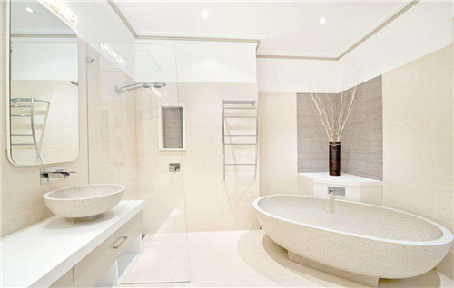 2、应该以白色为主,因为白色是干净、清爽的代表色,一旦浴缸当中有脏东西在上面,就会马上被发现,白色可以说是金的代表色,金在风水当中有生水的作用,五行相生就会给居住者带来好的运气。
