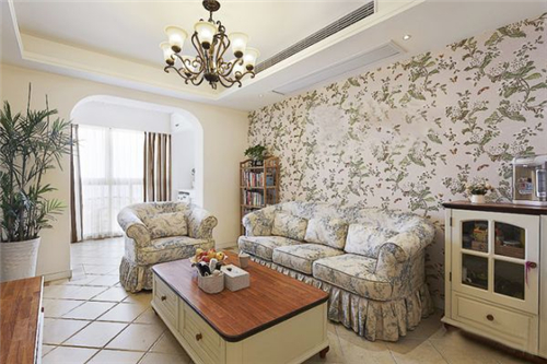 1、这是一个关于客厅的案例,布艺的碎花沙发很有自然田园的格调,而身后的墙面采用了花鸟图案的壁纸,家居壁纸装修效果图,沙发和背景墙的花饰风格很搭,两者相互呼应,让人感到清新舒适,居室也精美细致。