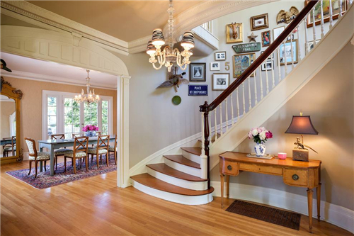 许多楼梯会从客厅区域来延伸,这也是个不错的办法,不仅具有很强的实用功能,还给居室带来了意想不到的装修效果,除此之外,还可以设计在餐厅附近,既不会占用多余的空间,还方便人们上下楼。