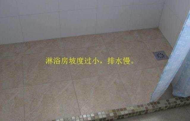 6、淋浴房没做坡度,下水慢。